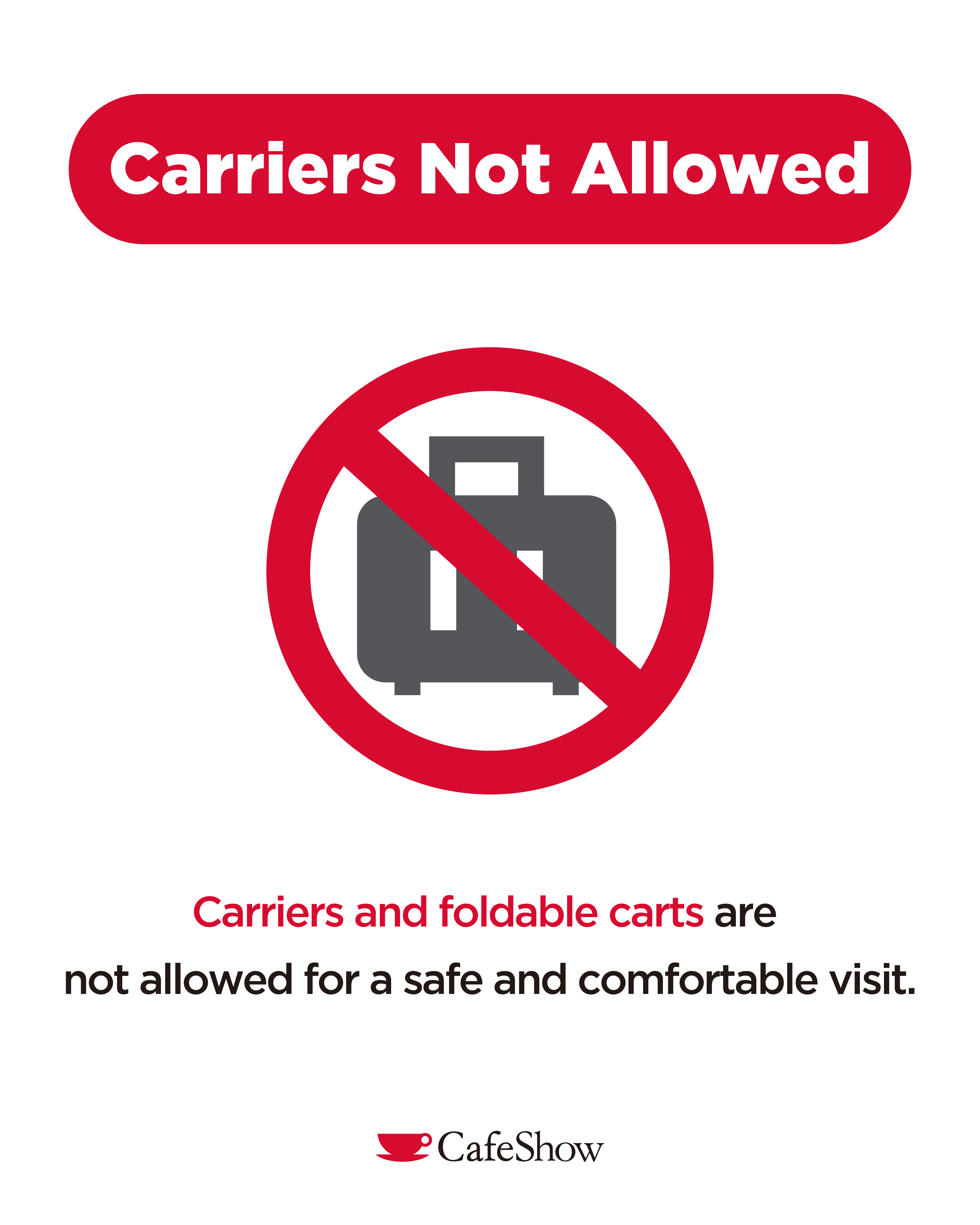 Dear visitors of the Cafe Show Seoul ☕️ To ensure a smooth viewing experience and safe event operation, the entry of carriers and foldable carts (including shopping carts) is strictly prohibited inside the exhibition halls.