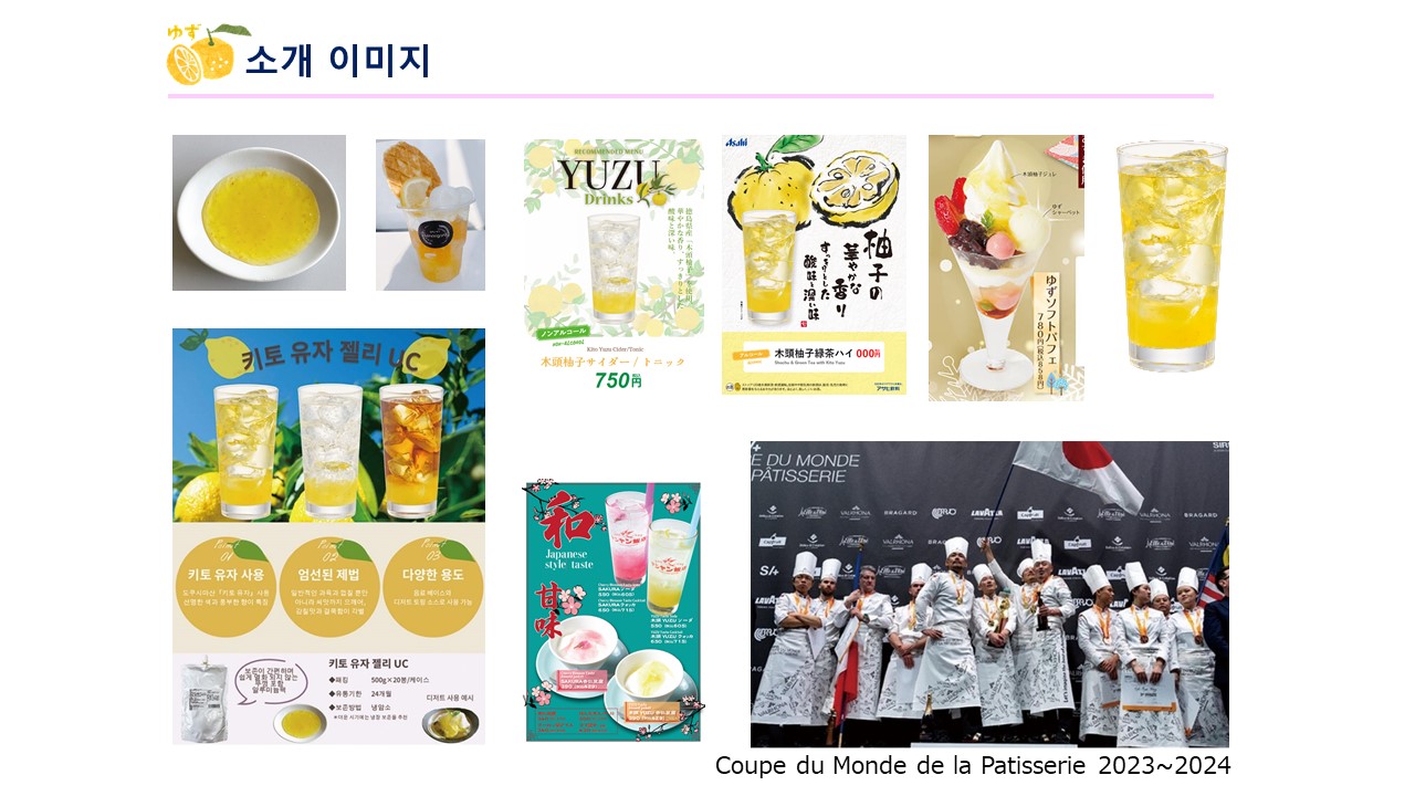 Yuzu Jelly UC is made with Kito Yuzu from Tokushima, Japan. Through a carefully refined method, not only the peel and pulp but also the seeds are crushed, creating a vivid color, a refreshing acidity, and a rich, deep flavor. Despite the recent shortage in yuzu supply, Yuzu Jelly UC ensures a stable supply. Its versatility?as a beverage base, dessert topping, or sauce?positions it for even stronger demand in the Korean market in the near future.