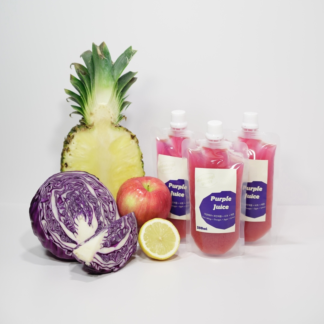 Purple Juice is a 100% cold-pressed blend of red cabbage, pineapple, apple, and lemon. Rich in fiber and vitamins, it supports digestion and skin vitality. With its sweet and tangy flavor, this “beauty juice” delivers freshness, health, and enjoyment in every sip.