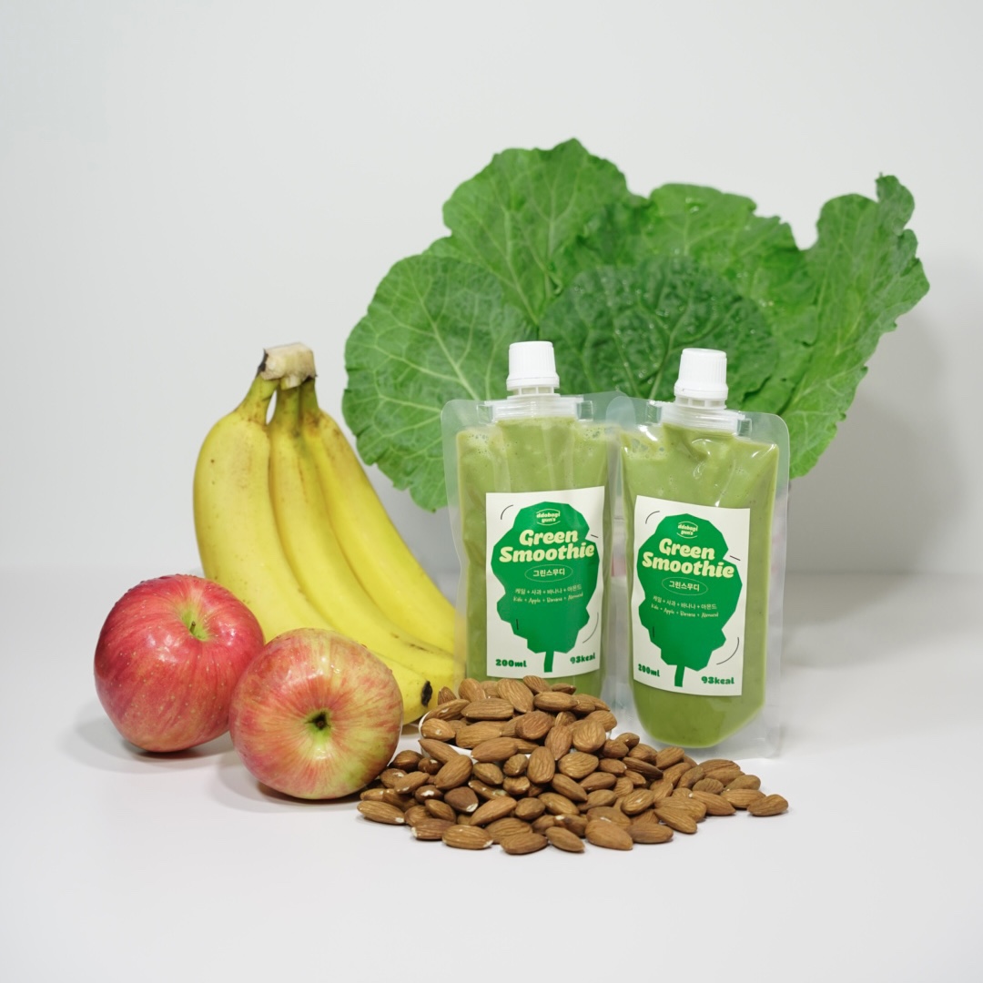 Green Smoothie is a 100% raw blend of kale, apple, banana, and almond. High in fiber and nutrients, it provides natural sweetness and lasting fullness, making it ideal as a meal replacement. Frozen right after production, it keeps its freshness and is the best-selling smoothie of Ddobagi Yuns.