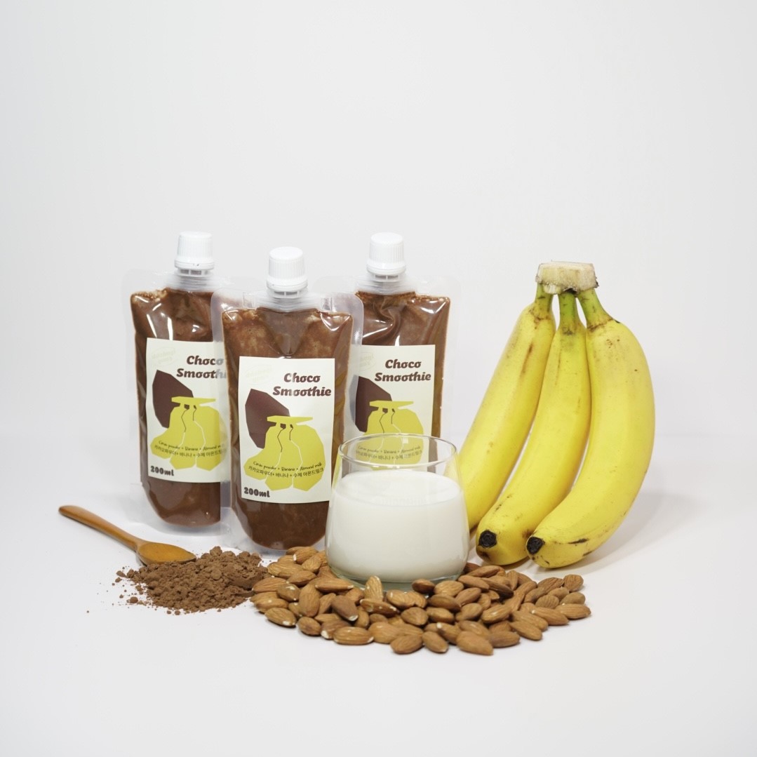Choco Banana Smoothie is made with banana, homemade almond milk, and cacao powder, offering a mild sweetness with a rich and satisfying taste. Combining the smooth flavor of banana, the nuttiness of almond milk, and the depth of cacao, it is perfect as a snack for kids, a healthy alternative to coffee, or a post-workout energy boost. Free from additives and frozen immediately after production, it preserves freshness and nutrition, making it one of Ddobagi Yuns’ most loved smoothies.