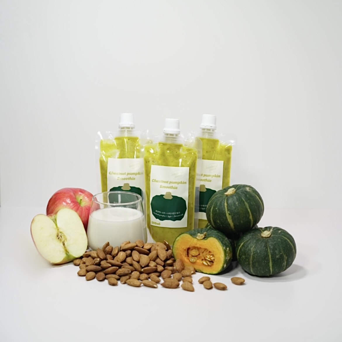 Chestnut Pumpkin Smoothie is made with oven-baked chestnut pumpkin, homemade almond milk, and apple. Its gentle natural sweetness and creamy flavor make it enjoyable for both kids and adults, whether as a snack or meal replacement. Rich in fiber and nutrients, it provides lasting fullness and is ideal for post-workout energy or a balanced diet. Frozen immediately after production, it preserves freshness and delivers a wholesome taste for a healthy daily routine.