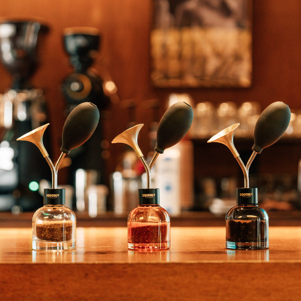 Squeaky spreads aroma while blocking air. Fill your space with “visible fragrance” and offer customers a new sensory experience. Without opening coffee bags, the flower-shaped funnel delivers the true aroma of specialty coffee. Beyond coffee, it works perfectly with tea, spices, and perfumes, making it highly versatile. Its hygienic structure and elegant design double as interior decor, elevating your space. Squeaky is a display solution that combines aroma, space, and experience all at once.