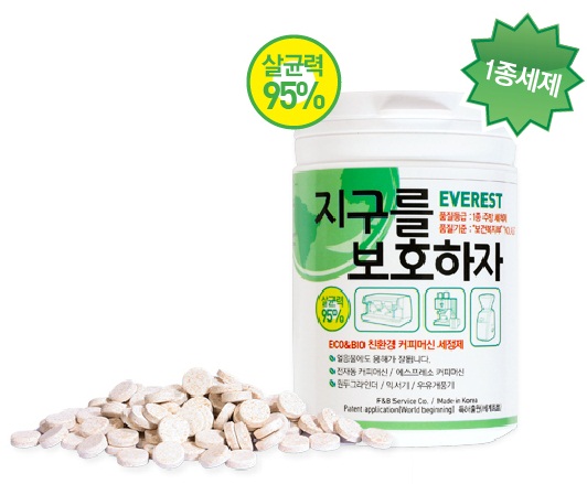 *Profit generation effect per coffee machine : KRW 240,000 per month, KRW 2,880,000 per year 1. The world's first developed "ECO&BIO Friendly detergent" : Effervescent tablet 2. Holds 3 patents 3. One product, can be used on all equipment (baby bottles available) 4. Water quality and land improvement effect even if disposed of in the sewer.