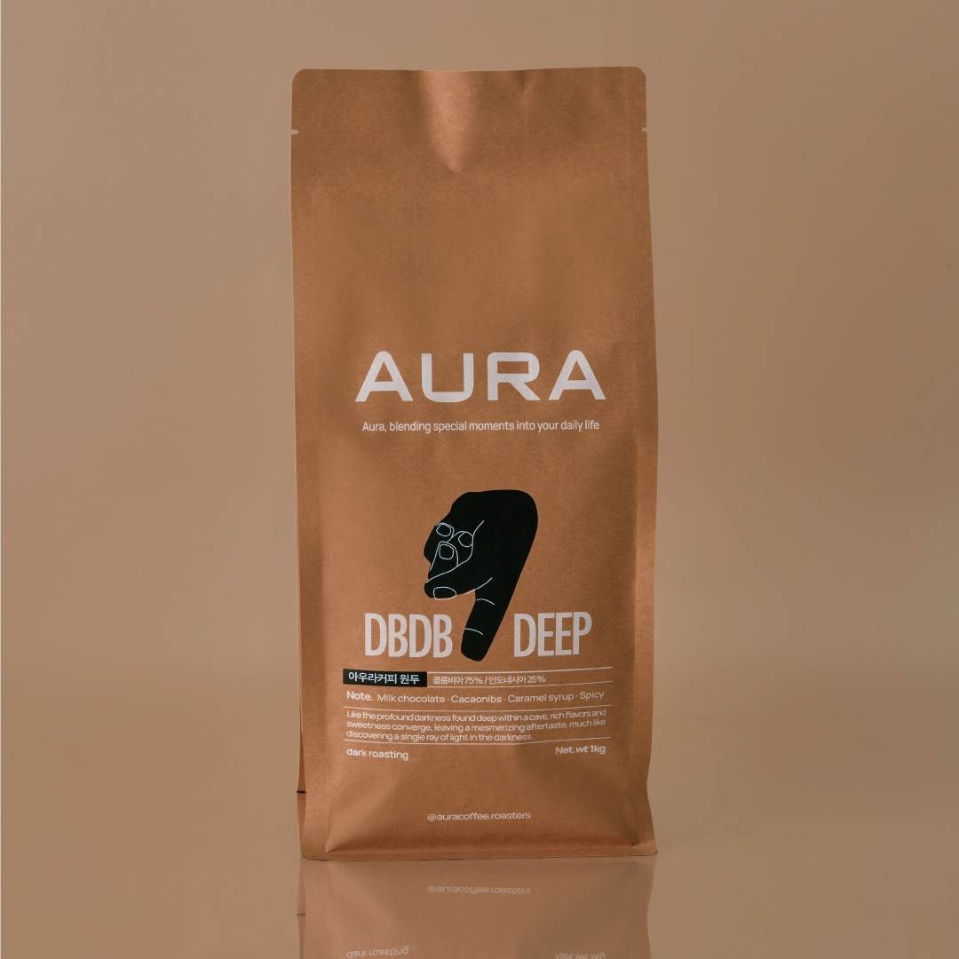 DBDBDEEP ? Dark Colombia 70% · India 30% A bold blend with rich milk chocolate and deep cacao notes balanced by caramelized nuts and herbal nuances. Each sip leaves a strong lasting impression delivering the profound essence of coffee. Tasting Notes Milk Chocolate · Cacao · Caramel Nuts · Herbs Fragrance ★★☆☆☆ · Sweetness ★★★★☆ · Acidity ★☆☆☆☆ · Body ★★★★★ Aura’s Comment Defined by its intensity and heavy body DBDBDEEP is perfect for those who enjoy coffee’s deepest flavors.