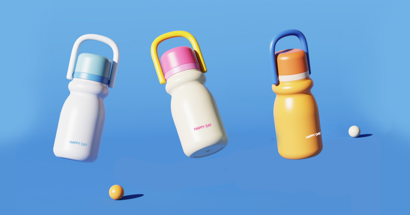 Handle Vacuum Bottle??: Features vacuum insulation, an arched carrying handle, and a playful "HAPPY DAY" design. Perfect for keeping drinks hot or cold daily.