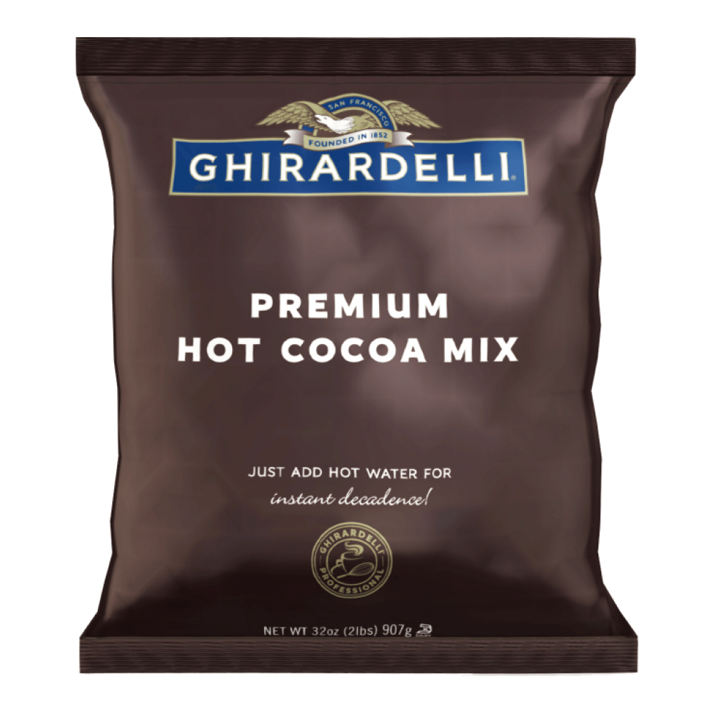 Ghirardelli’s premium hot cocoa powder, made with high-quality cocoa and skim milk, creates a rich, full-flavored hot chocolate using only hot water and also blends beautifully into cafe mochas. Its economical pouch packaging makes it convenient for dispenser use as well.