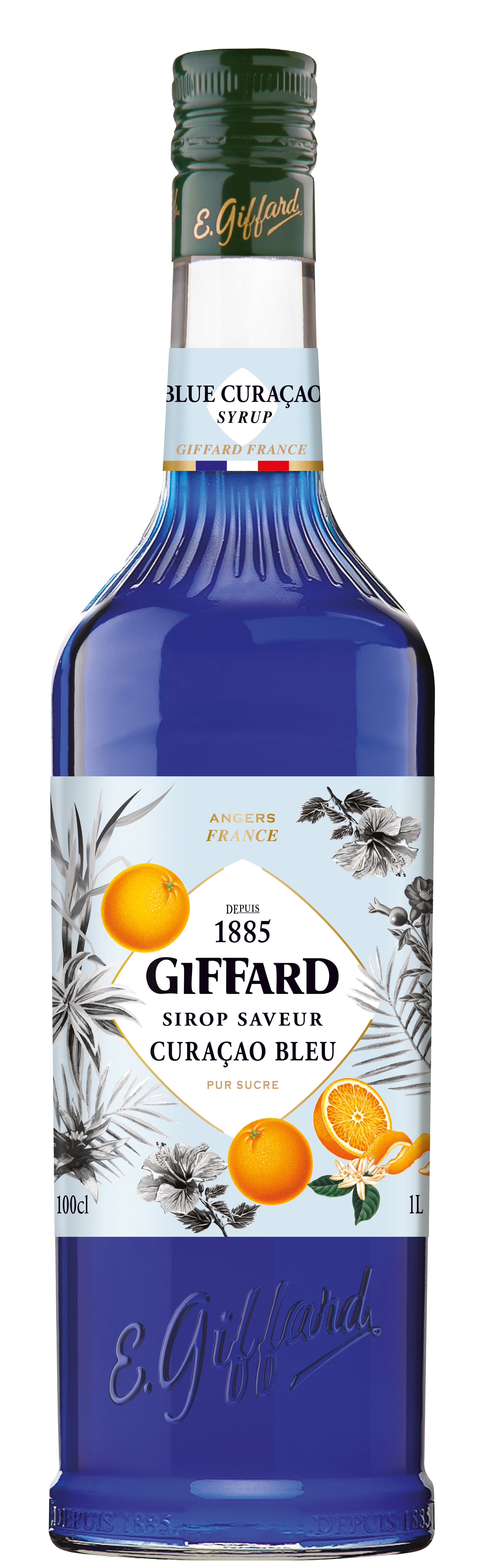 Giffard Blue Curacao Syrup has a clear sapphire-blue color with a fresh orange flavor. It pairs wonderfully with cocktails, lemonade, sparkling drinks, and smoothies, and is also excellent for coffee, baking, desserts, and many other culinary uses.