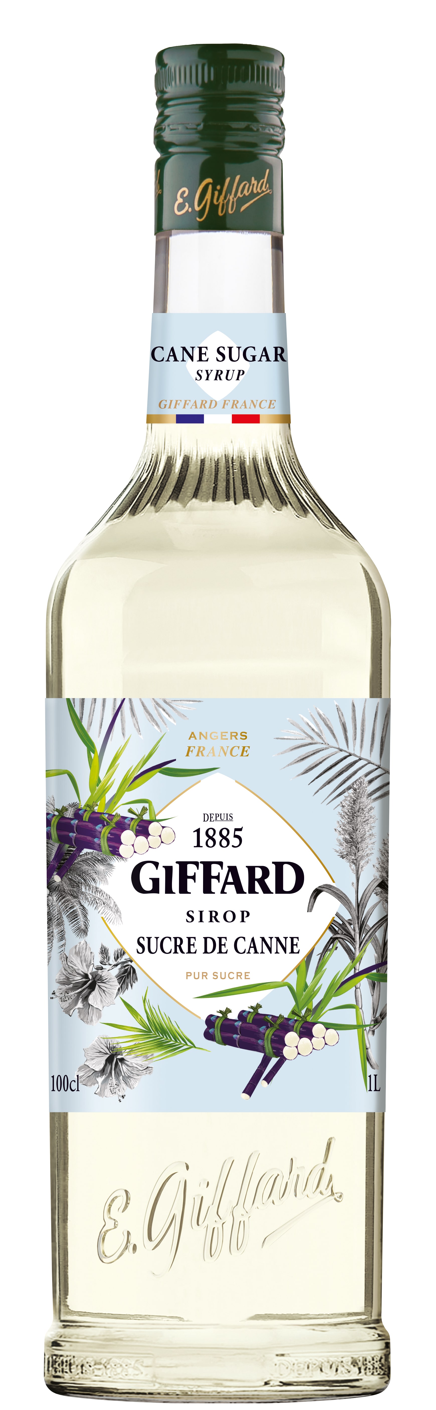 Giffard Cane Sugar Syrup has a clear color with a gentle, balanced cane sugar flavor that enhances other ingredients without overpowering them. It can be used in a wide variety of drinks and culinary creations.