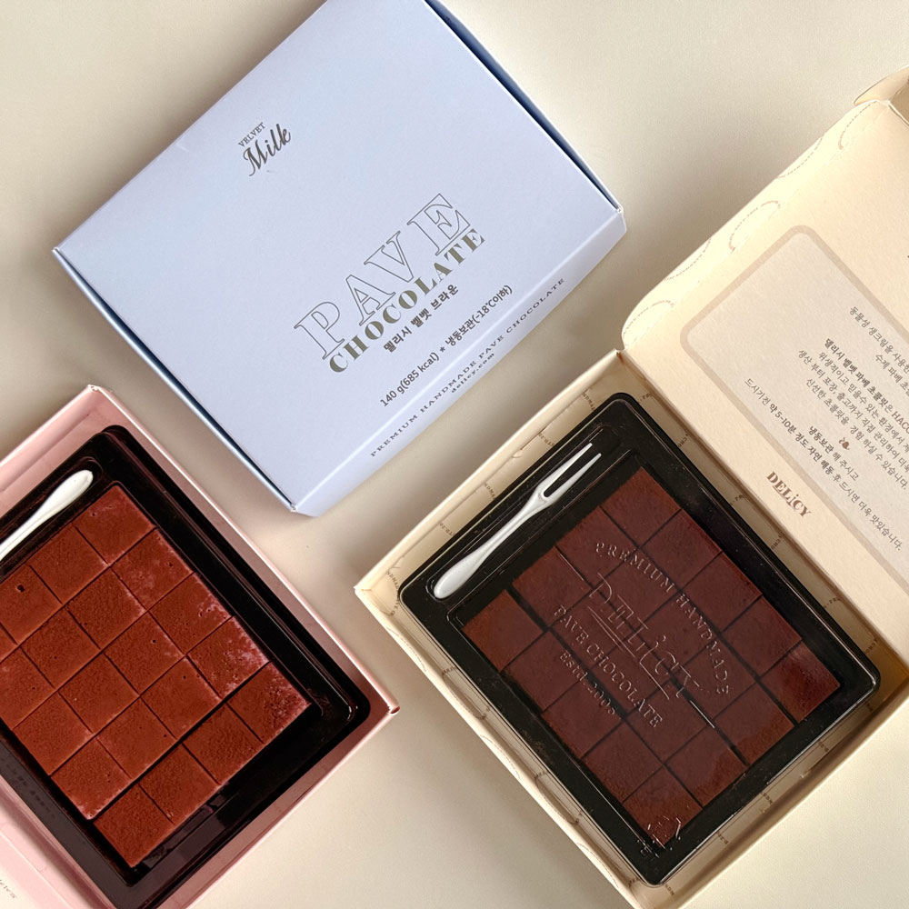 It is a soft and chewy pave chocolate made by mixing chocolate with fresh cream. There are dark, milk, and raspberry flavors.