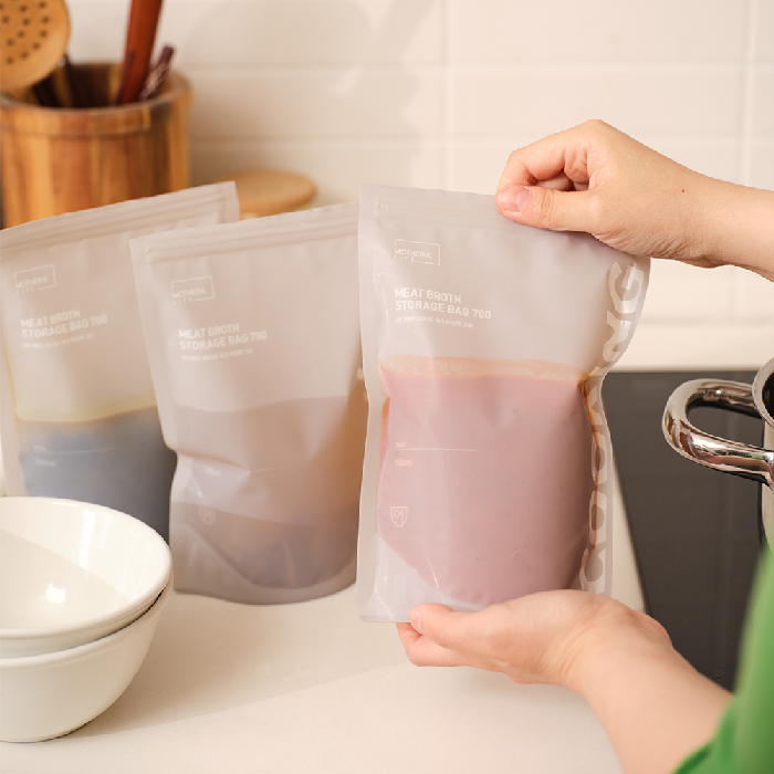 A versatile broth storage pack for everyday use. Food and Drug Safety Tested. Freeze-safe and microwave-safe. Convenient vertical storage. Easy-cut design for ease of use. 100% developed and manufactured in Korea.