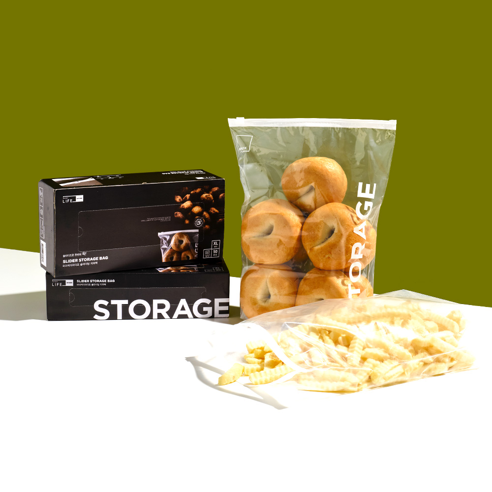 Easy-to-use slider packaging. Food-safe tested. 100% developed and manufactured in Korea. Versatile. Refrigerated, frozen, and microwave safe. Stand-standing base design