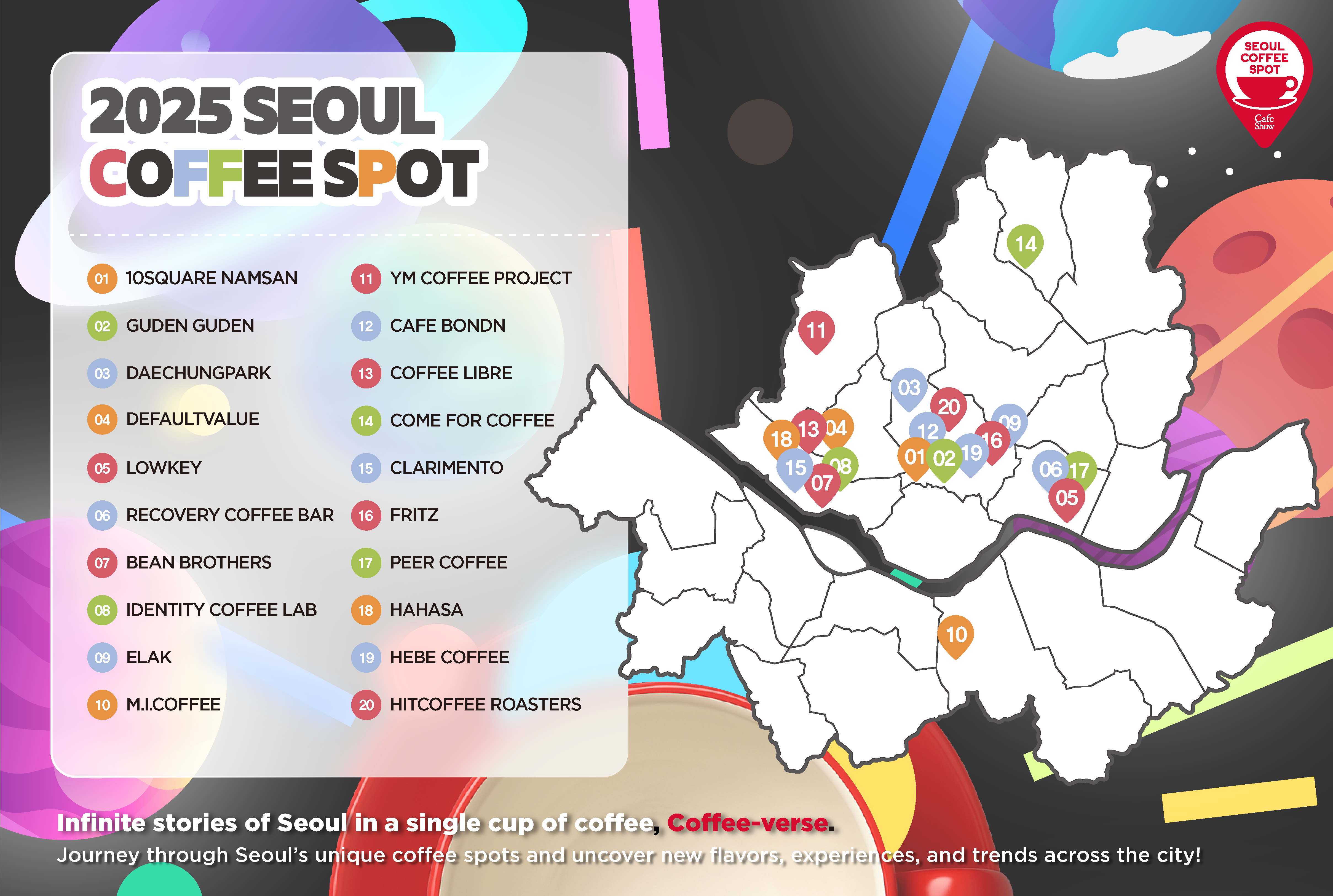 Cafes in Seoul go beyond a single cup — each holds a world of its own. Distinctive menus, inspiring spaces, and the stories within them come together to create a universe of coffee that shines like countless stars across the city. This year at Seoul Coffee Spot, join 20 leading cafes shaping the coffee culture of our time. Discover Seoul’s latest coffee trends, fresh inspirations, and a truly special journey through coffee. Here, where many worlds coexist, your moment to discover your own Coffee-verse begins.