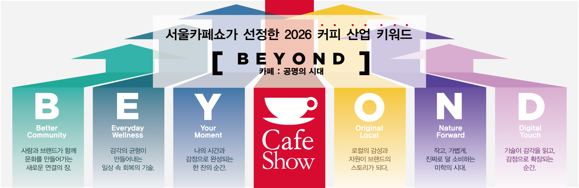 GLOBAL LEADER IN COFFEE EVENT CAFE SHOWSEOUL 2022 2022. 11. 23. Wed - 26. Sat Coex, Seoul, Korea GLOBAL LEADER IN COFFEE EVENT CAFE SHOWSEOUL 2022 2022. 11. 23. Wed - 26. Sat Coex, Seoul, Korea GLOBAL LEADER IN COFFEE EVENT CAFE SHOWSEOUL 2022 2022. 11. 23. Wed - 26. Sat Coex, Seoul, Korea GLOBAL LEADER IN COFFEE EVENT CAFE SHOWSEOUL 2022 2022. 11. 23. Wed - 26. Sat Coex, Seoul, Korea GLOBAL LEADER IN COFFEE EVENT CAFE SHOWSEOUL 2022 2022. 11. 23. Wed - 26. Sat Coex, Seoul, Korea GLOBAL LEADER IN COFFEE EVENT CAFE SHOWSEOUL 2022 2022. 11. 23. Wed - 26. Sat Coex, Seoul, Korea GLOBAL LEADER IN COFFEE EVENT CAFE SHOWSEOUL 2022 2022. 11. 23. Wed - 26. Sat Coex, Seoul, Korea The 25th Seoul Int’l Cafe Show - 커피·차·베이커리·라이프스타일을 아우르는글로벌 커피 비즈니스의 중심 2026. 11. 11 - 14 | Coex, Seoul Experience New Values 커피 업계의 태동기부터 대한민국 커피 업계와 함께 성장해온 서울카페쇼는 산업과 지식, 문화가 융복합된 창의적인 MICE 모델을 선보이며 서울카페쇼만의 특별한 가치와 경험을 선사해 오고 있습니다. Expand Your Business 전 세계 업계 관계자들이 추천하는 B2B 전시회 서울카페쇼는 글로벌 커피 및 F&B 시장의 트렌드를 한눈에 보고, 새로운 솔루션을 제시합니다. 참가업체 HALL A 우리 카페 신메뉴 개발 도전! 카페에 경쟁력을 선사할 장비·설비, 원부재료, 베이커리, HALL C 커피 원두·생두, 로스터기, 제연기, 그라인더, 커피머신, 추출기구, 정수필터 등 완벽한 커피 한잔을 위한 모든 것 HALL B 애프터눈 티파티에 온 것처럼 눈이 즐거운 공간! 차, 음료, 초콜릿, 디저트, 테이블웨어, 인테리어 HALL D 전세계 최고의 커피와 힙한 카페들이 한자리에! 스페셜티커피, 로스터리카페, 커피머신 및 용품 참가업체 검색 #콜드브루 #홈로스팅 #에스프레소머신 #하니앤손스 #홍차 EVENT 월드커피리더스포럼 서울커피페스티벌 커피앨리 체리스초이스 2026 코리아 내셔널 바리스타 챔피언십 커피경연대회 CHERRY'S CHOICE카페 산업의 히트 아이템을 한 자리에서 확인해보세요! VIDEO생생한 영상으로 만나는 서울카페쇼 후원 협찬사 미디어 파트너